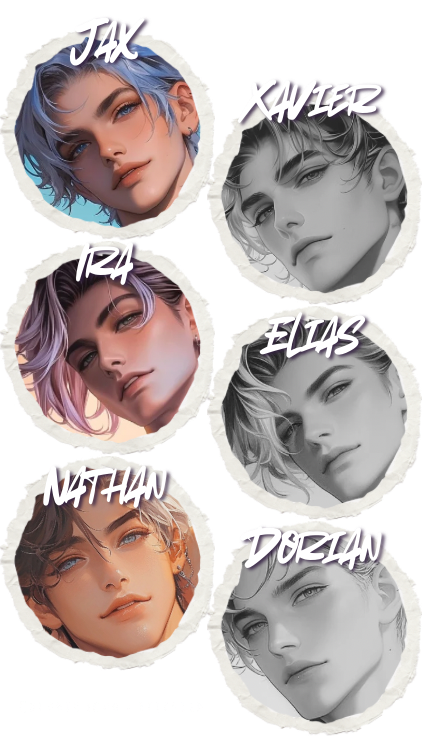 ︶꒦꒷♡꒷꒦︶In high school, Jax, Ira, Nathan, Xavier, Elias, and Dorian used their first initials to name their group JINXED. JINXED is their group distributing drugs around campus. Customers are aware they are drug dealers. JINXED has grown in numbers by hiring trustworthy people to be their peddlers. Occasionally, Jax or Ira will recruit more members.Secret: In college, the guys eventually extended their services to other crimes such as hacking, prostitution, blackmail, and other profitable venues.(Click a profile card to view more info on that character.)